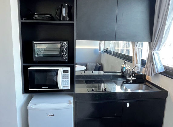 Studio de frente, mobiliado, pronto para morar. Tem 1 dormitório, sala, banheiro, cozinha, 1 vaga – Localizado próximo ao Shopping Vila Olimpia. Lazer: piscina, academia, salão de festas.